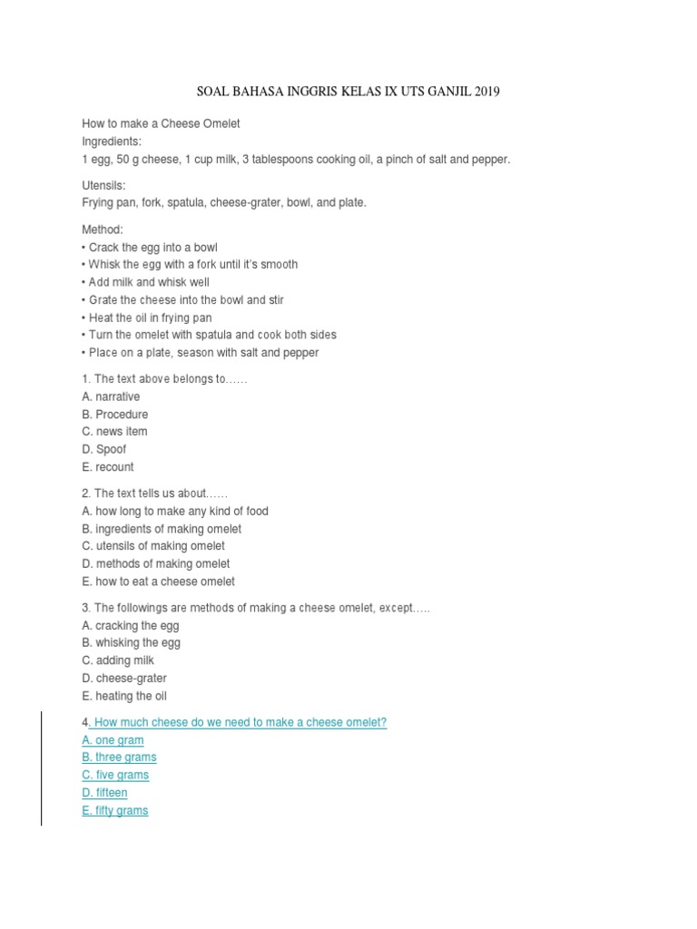 Soal Dan Jawaban How To Make A Cheese Omelet / Descriptive Text Jawaban Englishahkam : We did not find results for:. Check spelling or type a new query. Soal dan jawaban how to make a cheese omelet. We did not find results for: Maybe you would like to learn more about one of these?